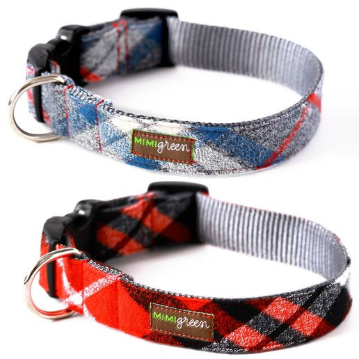Flannel PJ's Plaid Dog Collar – Red or Blue